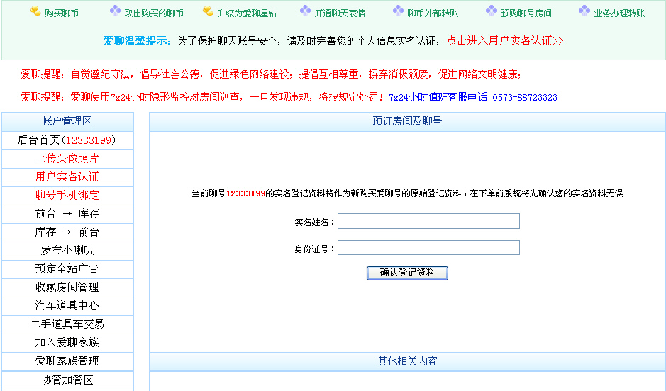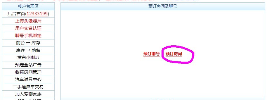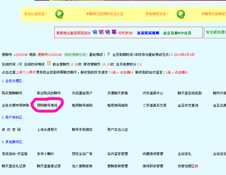 1.已经完成密保登记的用户可以通过下图中的链接进行申请靓号或房间的操作