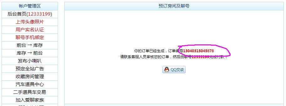 6.记录下自己的订单标号并点击页面上的QQ图标联系客服进行订单审核。