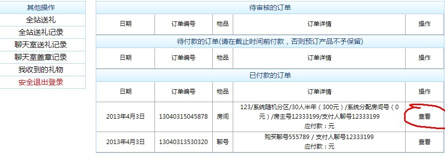 7.订单完成后点红圈位置的“查看”链接获取相应的订单信息。